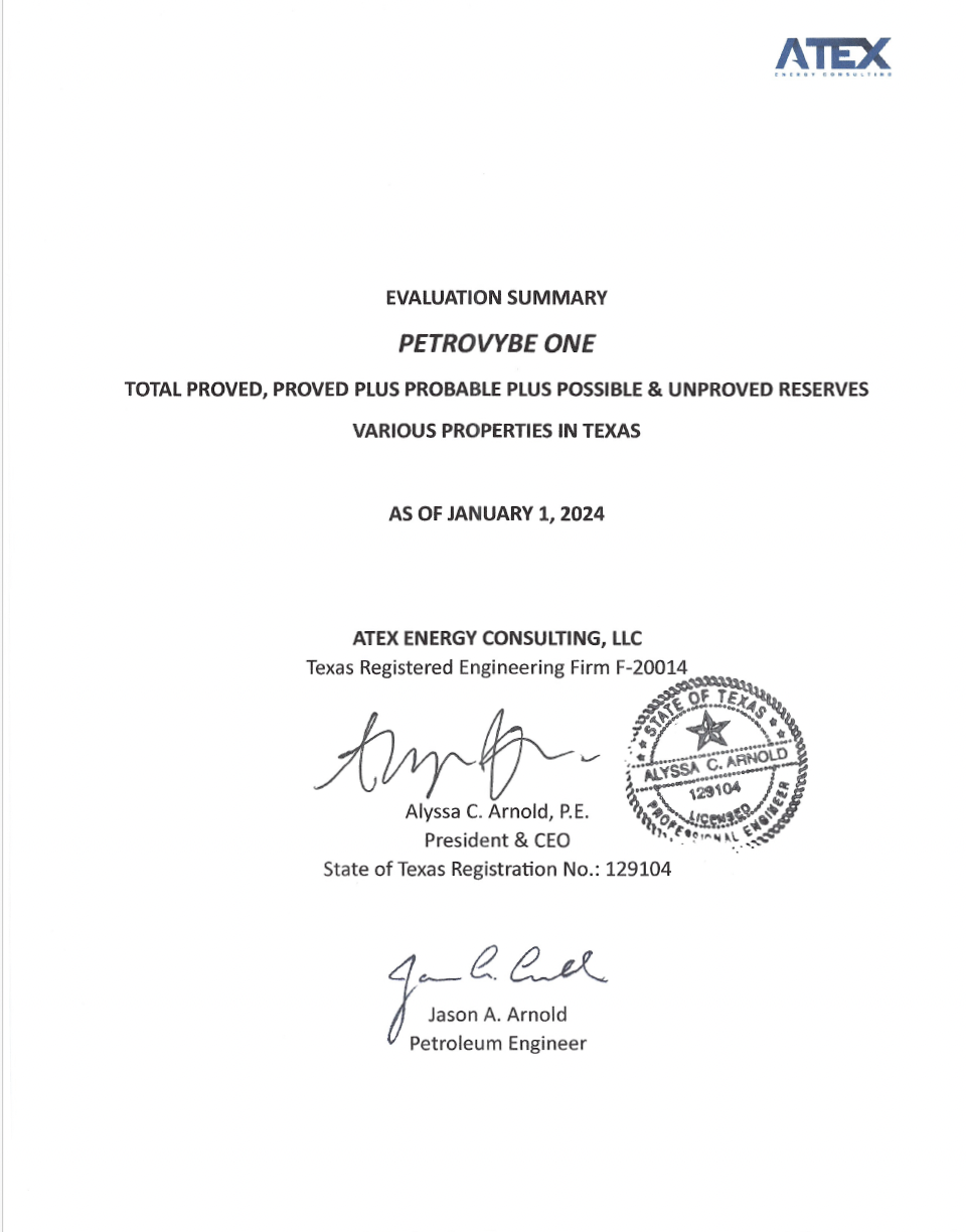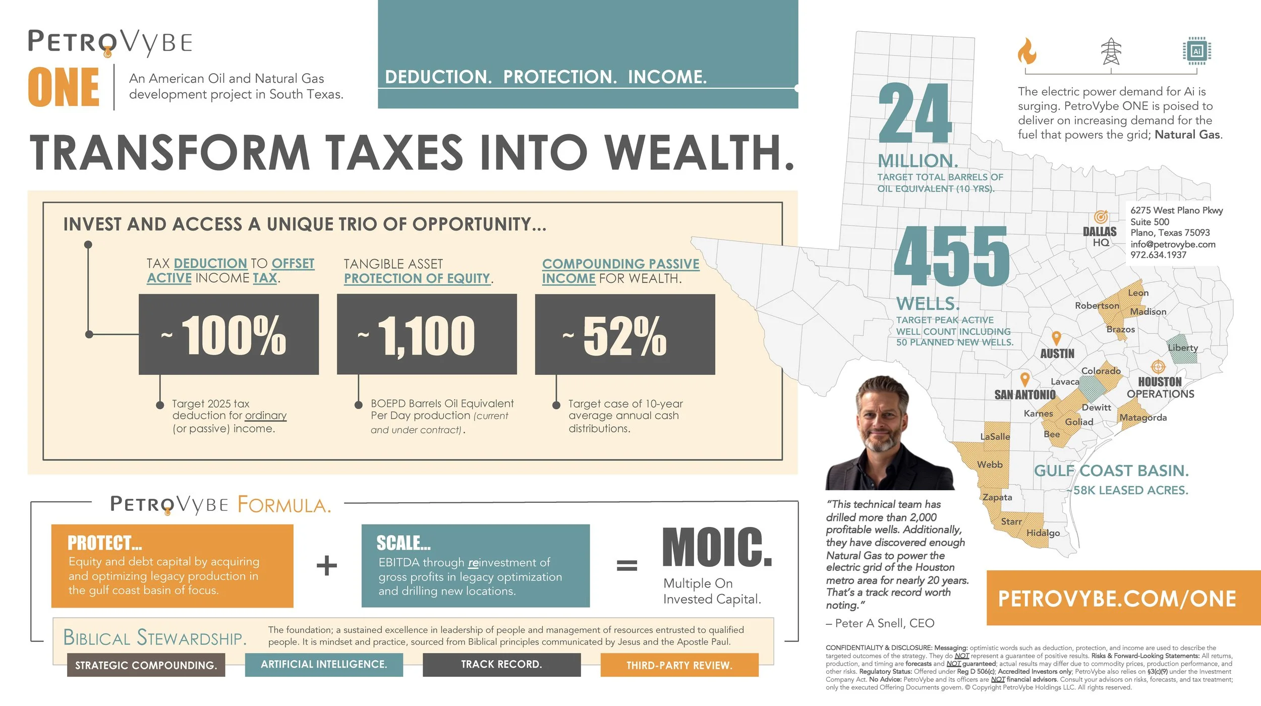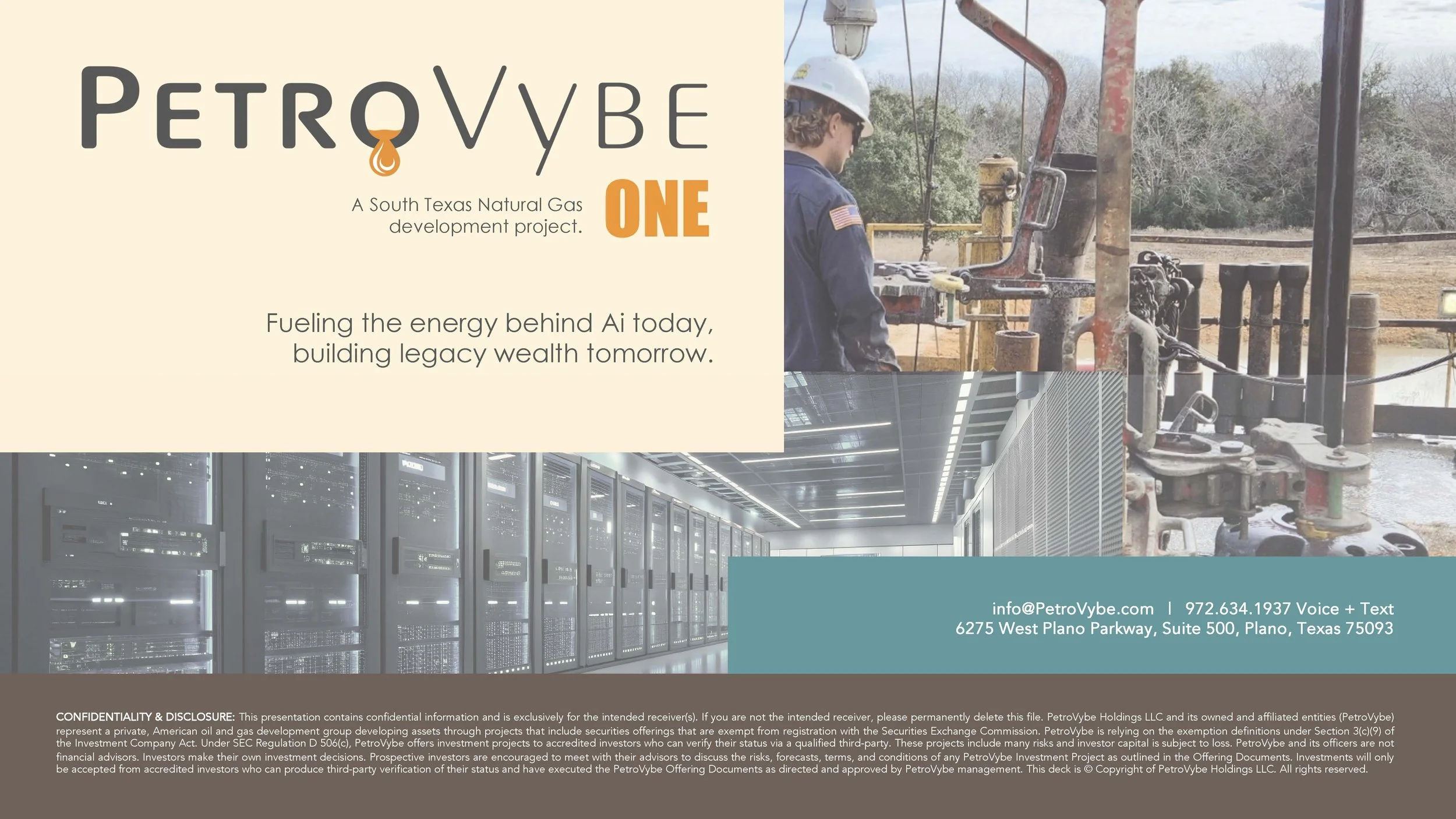 The information below includes documents produced by PetroVybe and documents produced by third parties. Please consider ALL information as you evaluate the project fit for your long-term wealth building goals, tax efficiency needs, risk tolerance, liquidity, and a 10-day timeline for investing.
