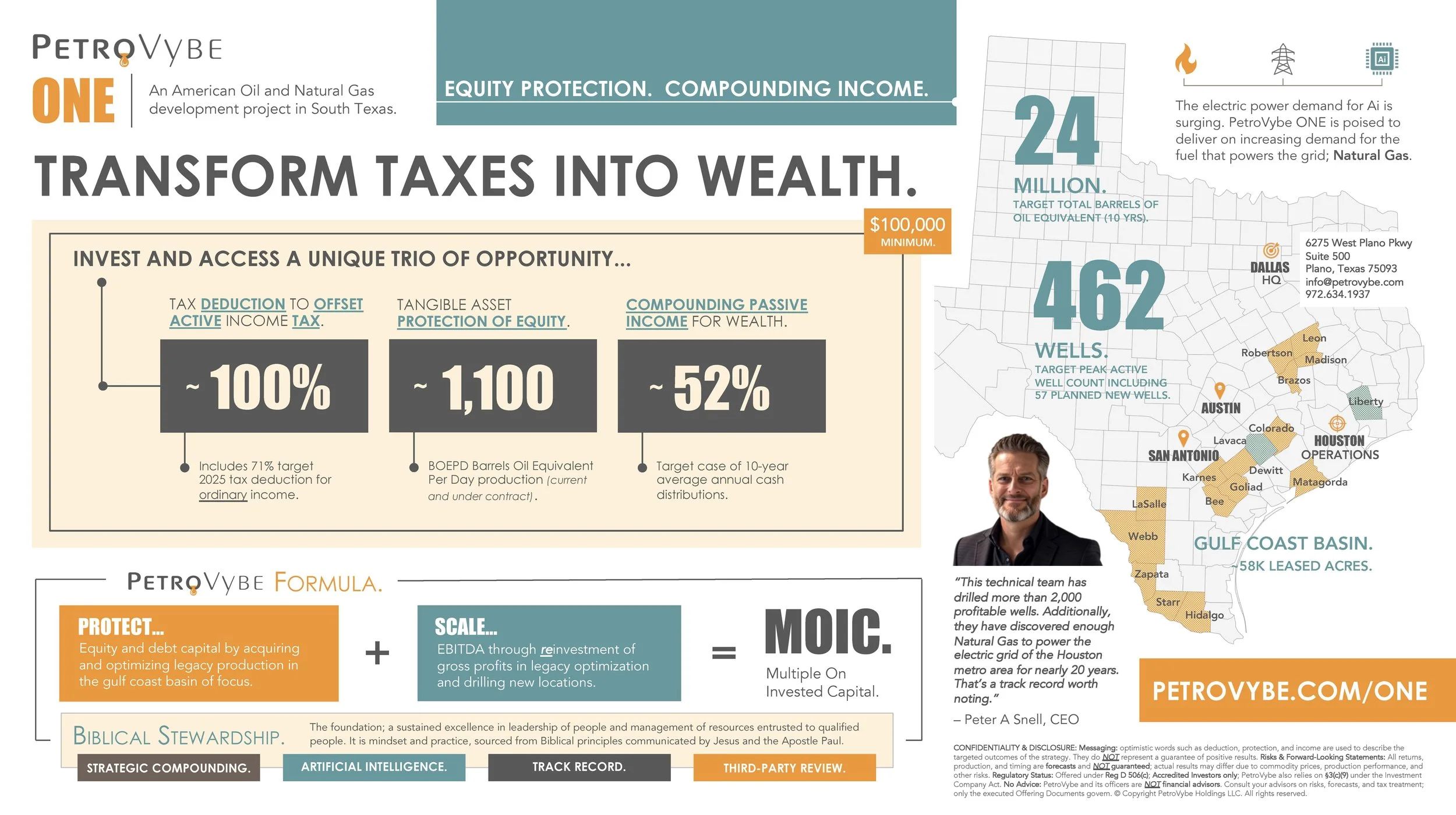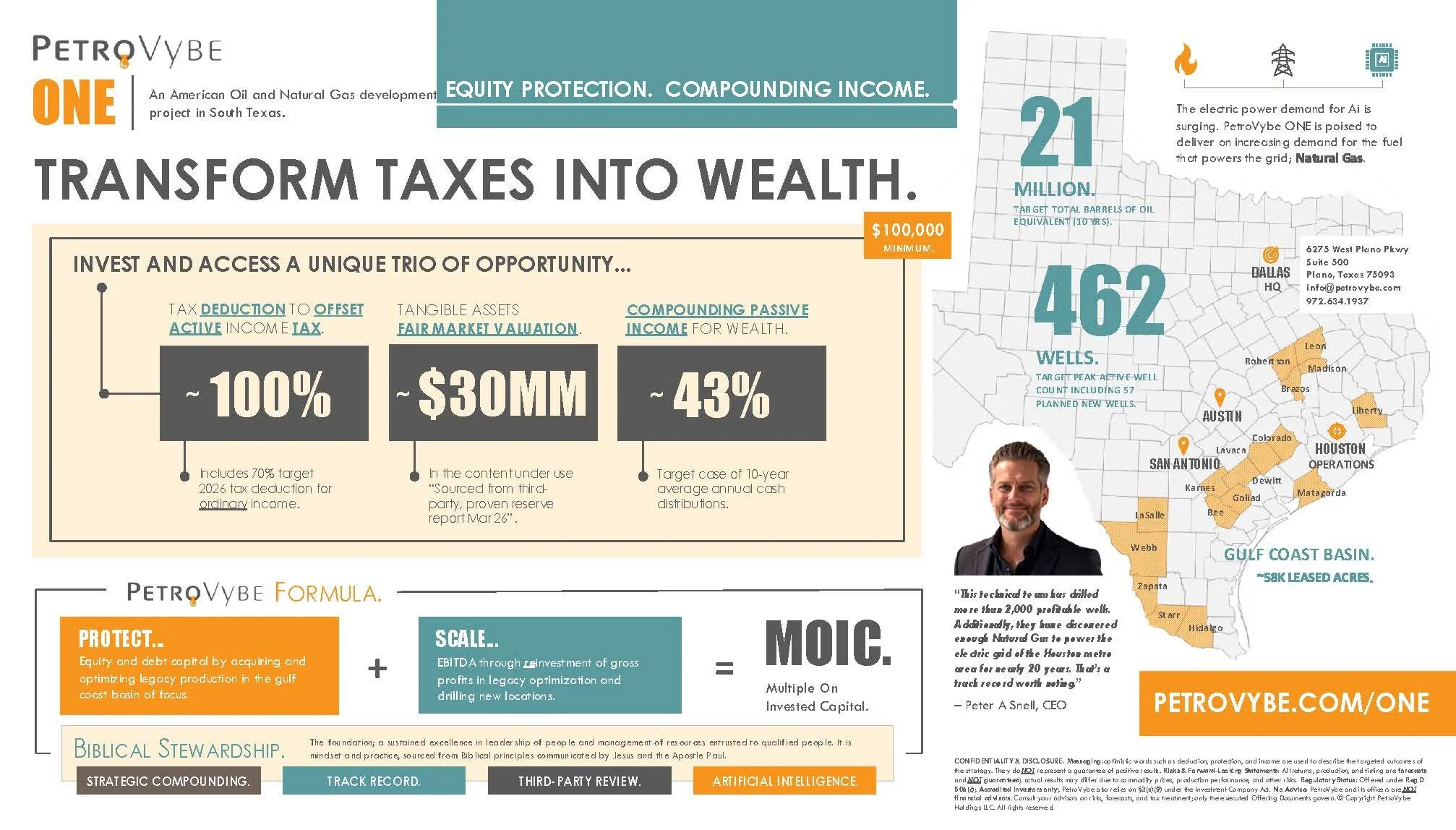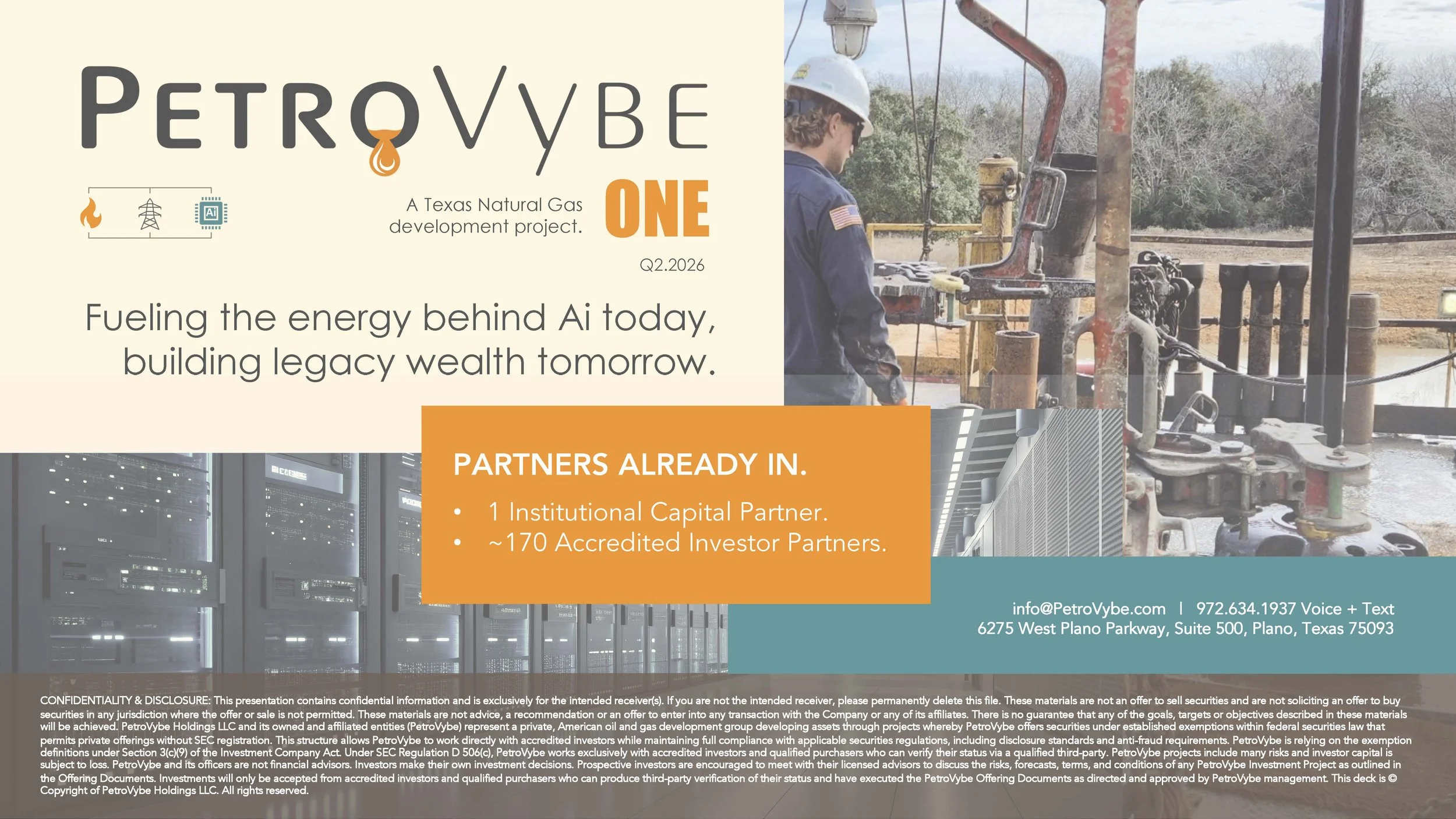 The information below includes documents produced by PetroVybe and documents produced by third parties. Please consider ALL information as you evaluate the project fit for your long-term wealth building goals, tax efficiency needs, risk tolerance, liquidity, and a 10-day timeline for investing.